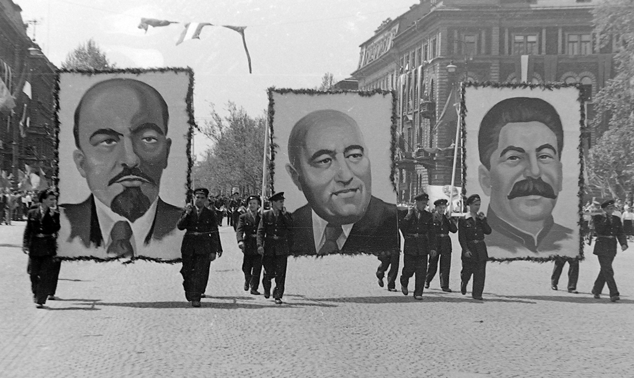 Rákosi nemcsak a terrort, hanem a legfőbb vezető imádatát is átvette a szovjetektől. Ő lett a pufók magyar Sztálin. Hatalmas posztereken szerepelt, dalok születtek róla, naponta istenítették az újságok és a rádió. 60. születésnapja országos ünnep lett.